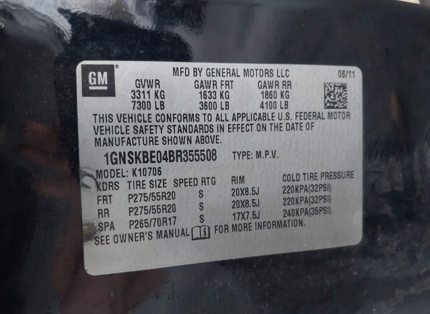 - VIN: 1GNSKBE04BR355508
