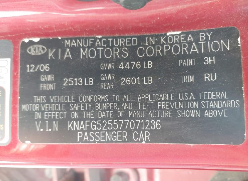 - VIN: KNAFG525577071236