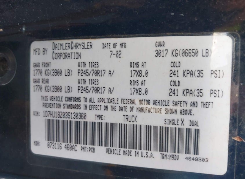 - VIN: 1D7HU18Z03S130360