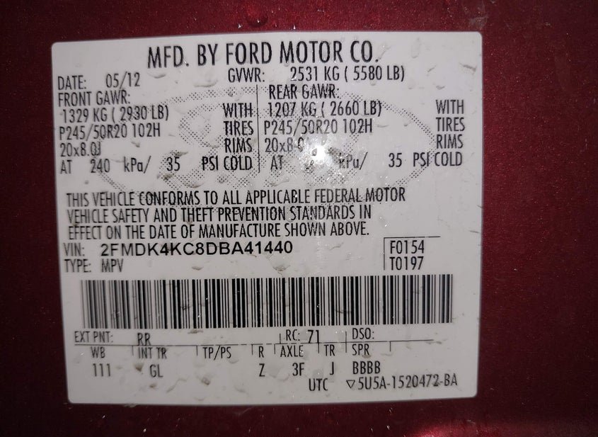 - VIN: 2FMDK4KC8DBA41440