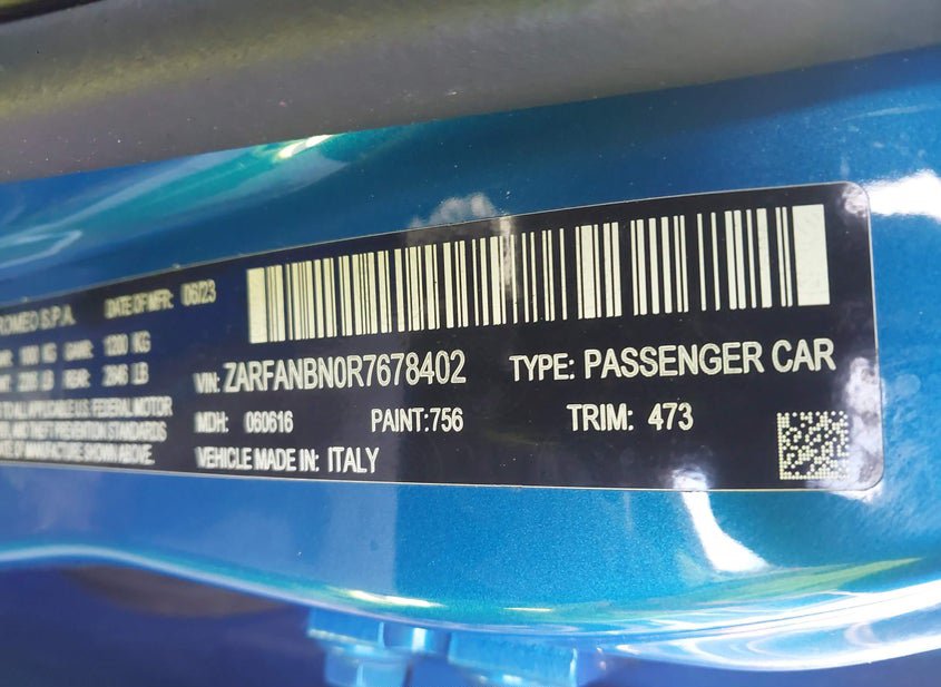 - VIN: ZARFANBN0R7678402