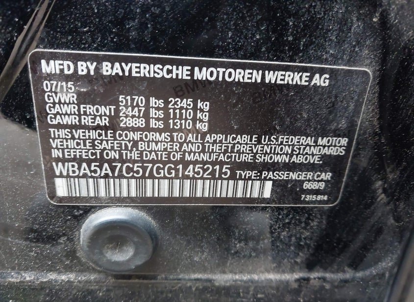 - VIN: WBA5A7C57GG145215