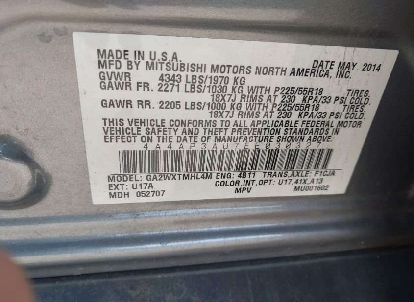 - VIN: 4A4AP3AU7EE030327