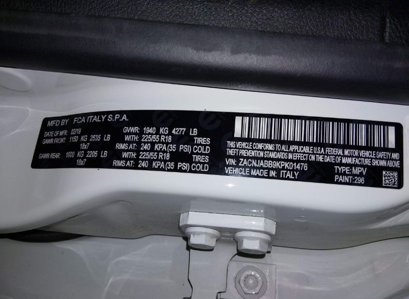 - VIN: ZACNJABB9KPK01476