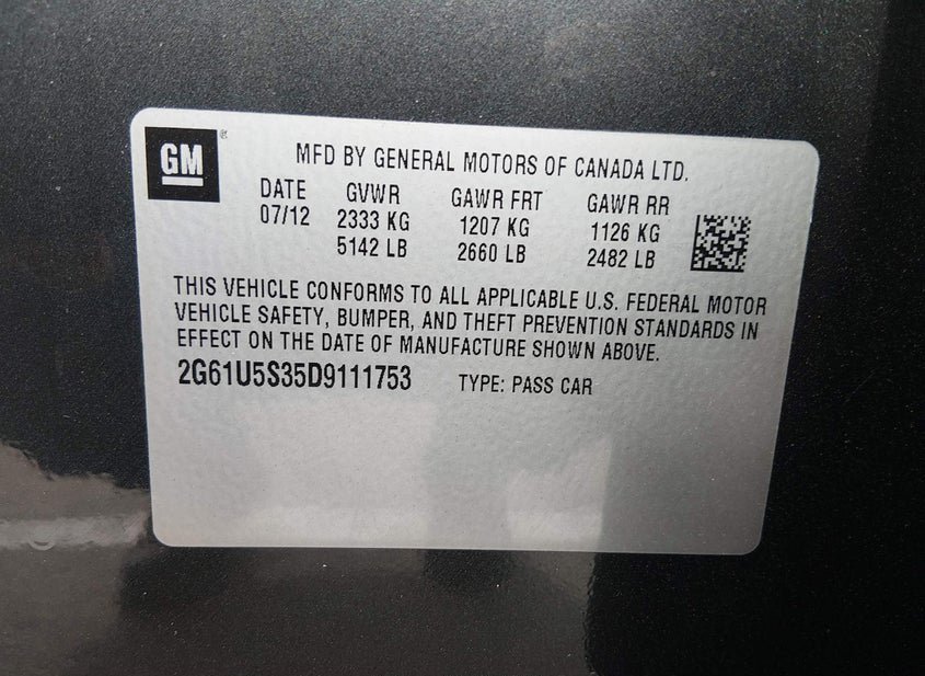 - VIN: 2G61U5S35D9111753