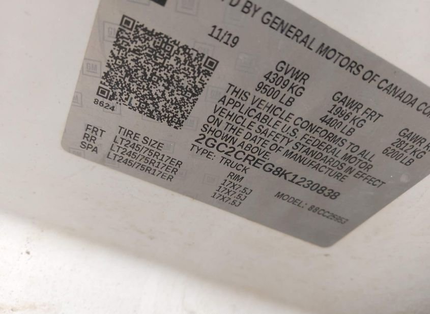 - VIN: 2GC2CREG8K1230838