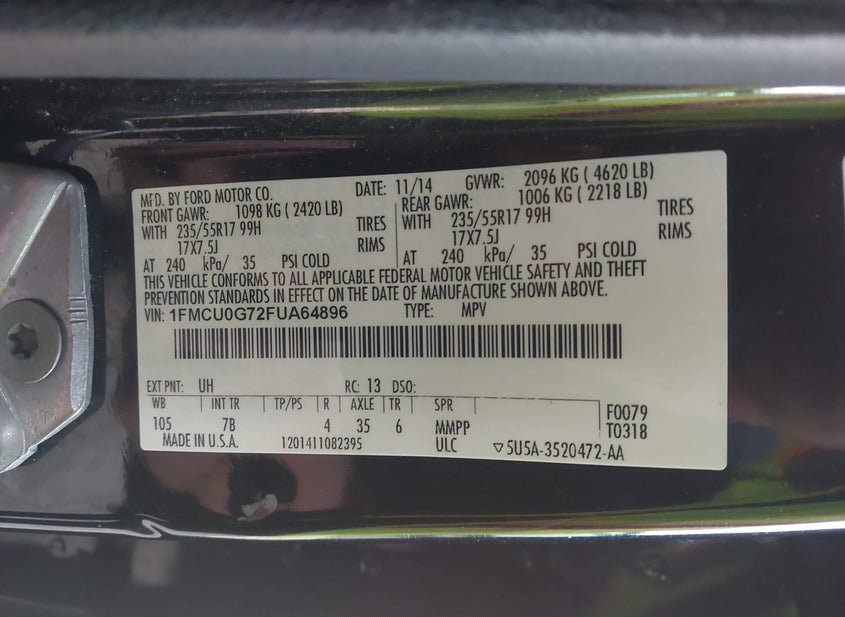 - VIN: 1FMCU0G72FUA64896