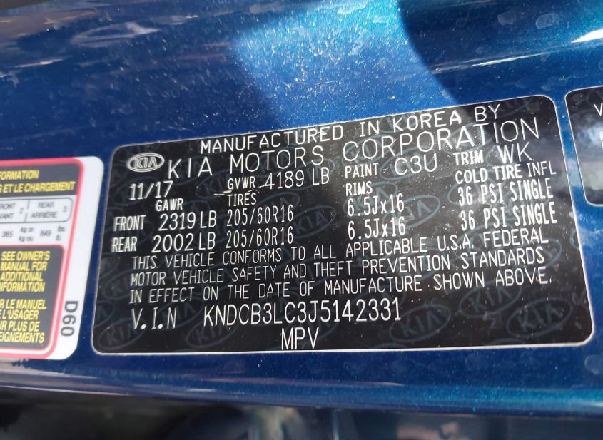 - VIN: KNDCB3LC3J5142331