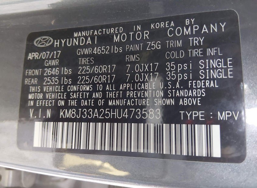 - VIN: KM8J33A25HU473583