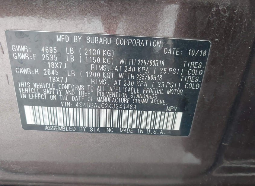 - VIN: 4S4BSAJC2K3241489