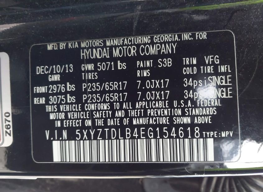 - VIN: 5XYZTDLB4EG154618