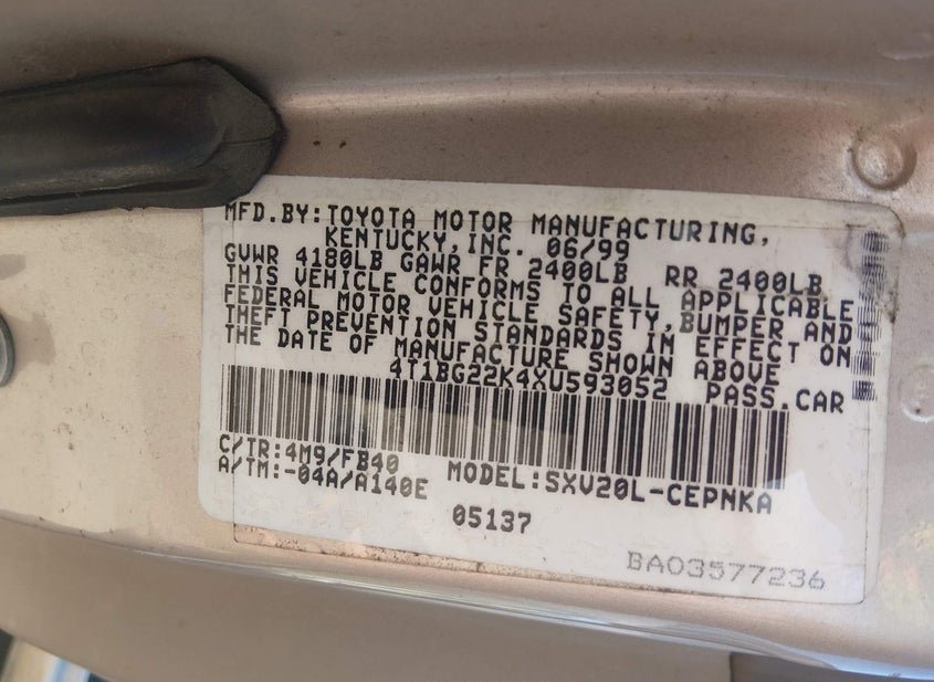 - VIN: 4T1BG22K4XU593052