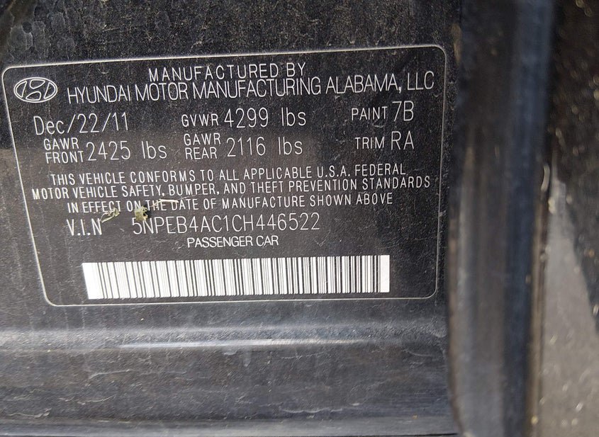 - VIN: 5NPEB4AC1CH446522