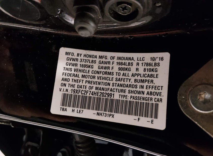 - VIN: 19XFC2F74HE202991