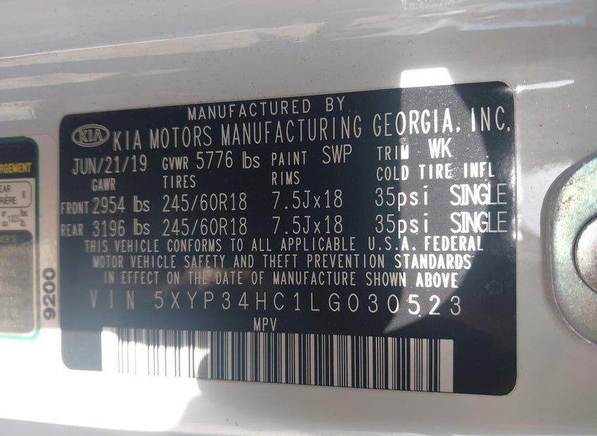 - VIN: 5XYP34HC1LG030523