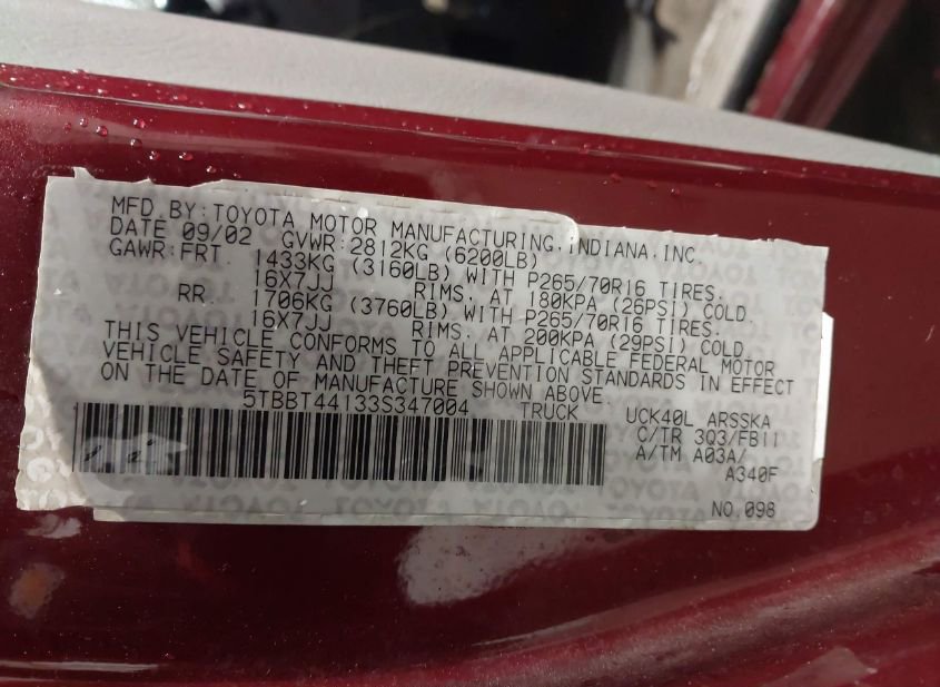 - VIN: 5TBBT44133S347004