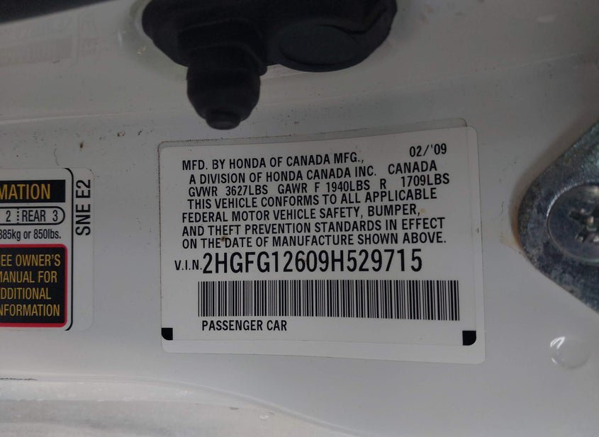 - VIN: 2HGFG12609H529715