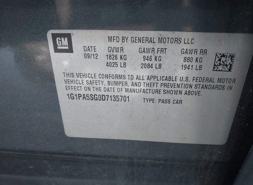 - VIN: 1G1PA5SG0D7135701