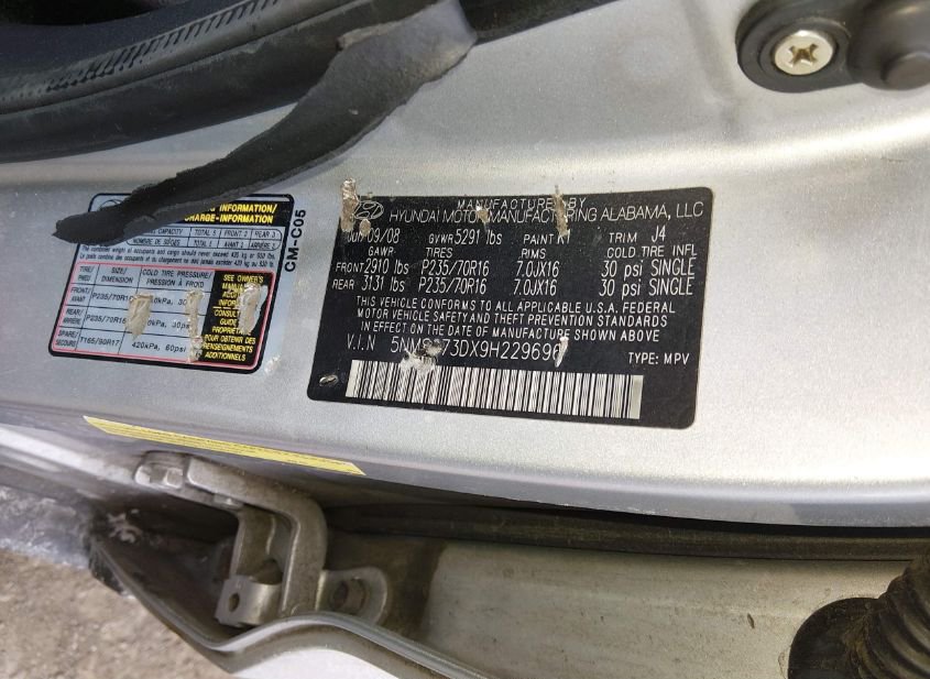 - Название лота: 2009 HYUNDAI SANTA FE GLS