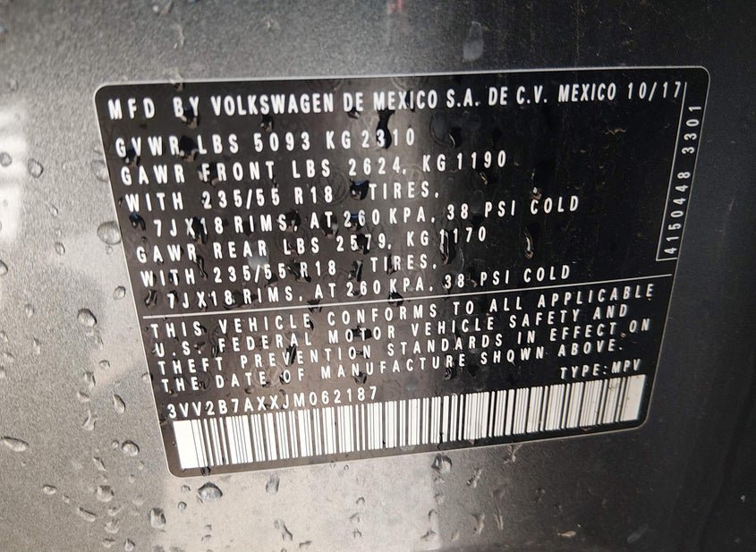 - VIN: 3VV2B7AXXJM062187