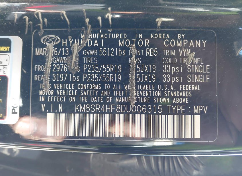 - VIN: KM8SR4HF8DU006315