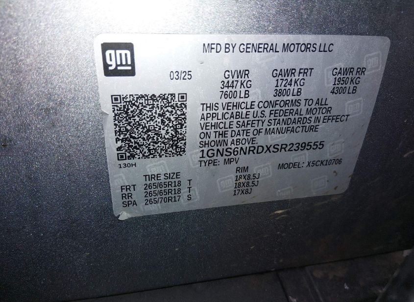 - VIN: 1GNS6NRDXSR239555