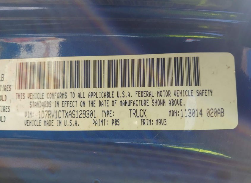 - VIN: 1D7RV1CTXAS129301