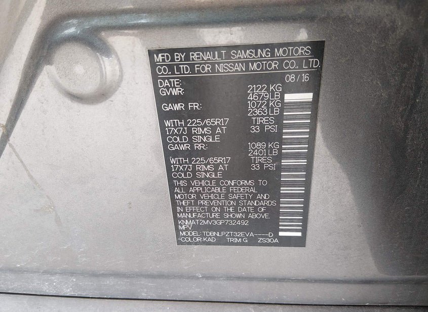 - VIN: KNMAT2MV3GP732492