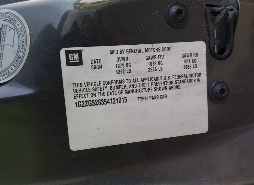 - VIN: 1G2ZG528354121015