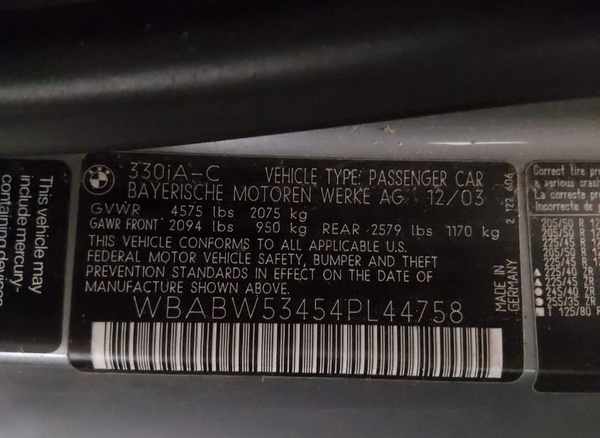 - VIN: WBABW53454PL44758
