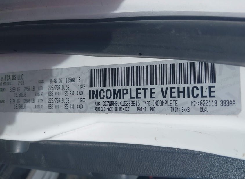 - VIN: 3C7WRNBLXJG233615