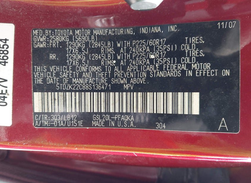 - VIN: 5TDZK22C88S136471