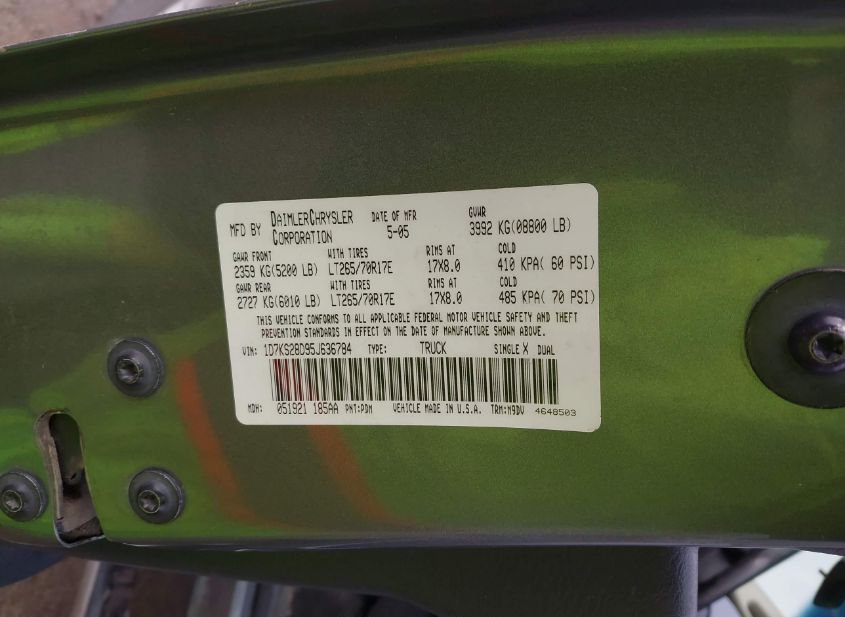 - Название лота: 2005 DODGE RAM 2500 SLT/LARAMIE