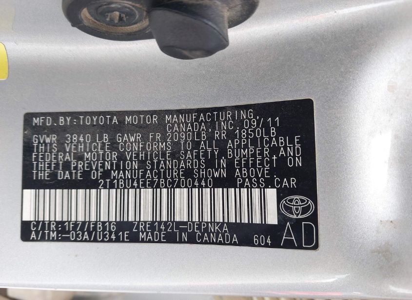 - VIN: 2T1BU4EE7BC700440