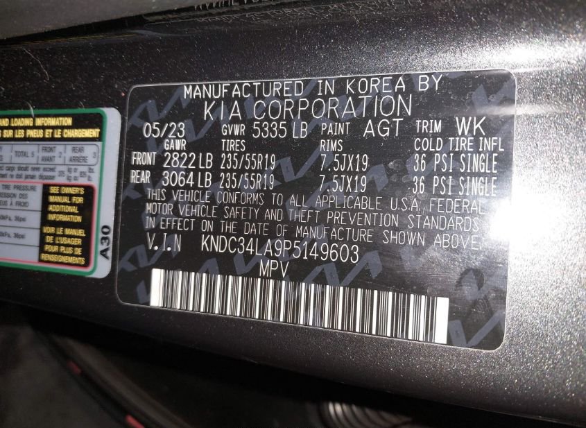 - VIN: KNDC34LA9P5149603