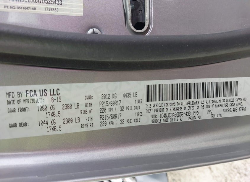 - VIN: 1C4NJCBA6GD525433