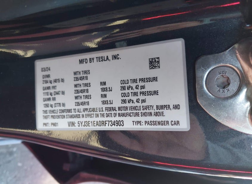 - VIN: 5YJ3E1EA0RF734903