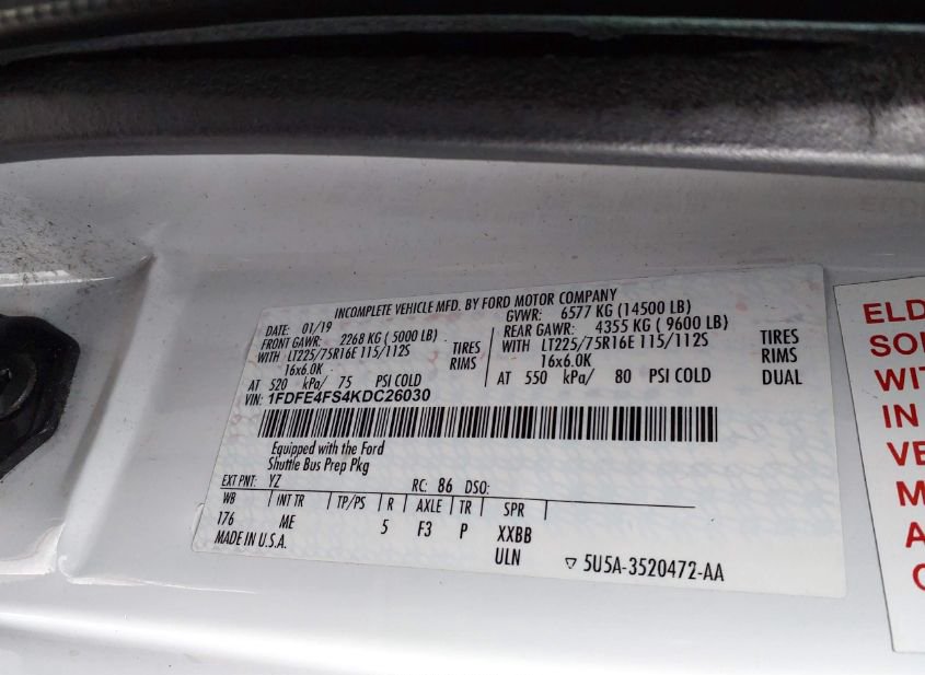 - VIN: 1FDFE4FS4KDC26030
