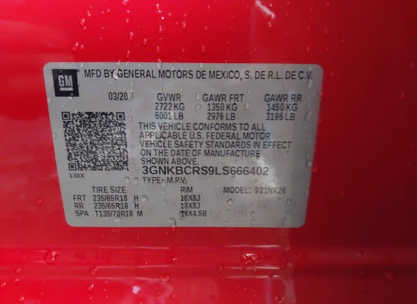 - VIN: 3GNKBCRS9LS666402