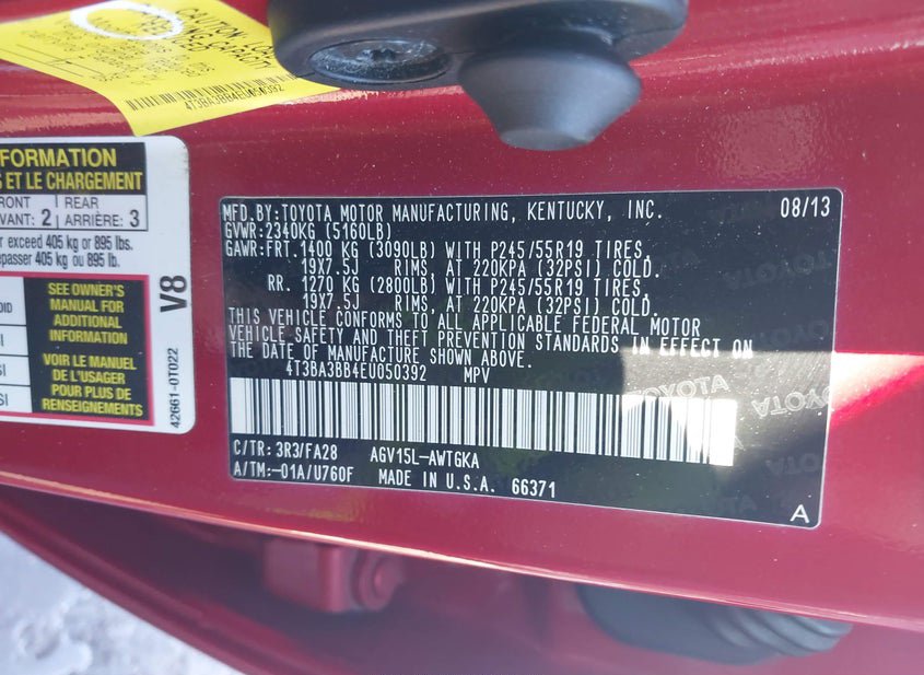 - VIN: 4T3BA3BB4EU050392