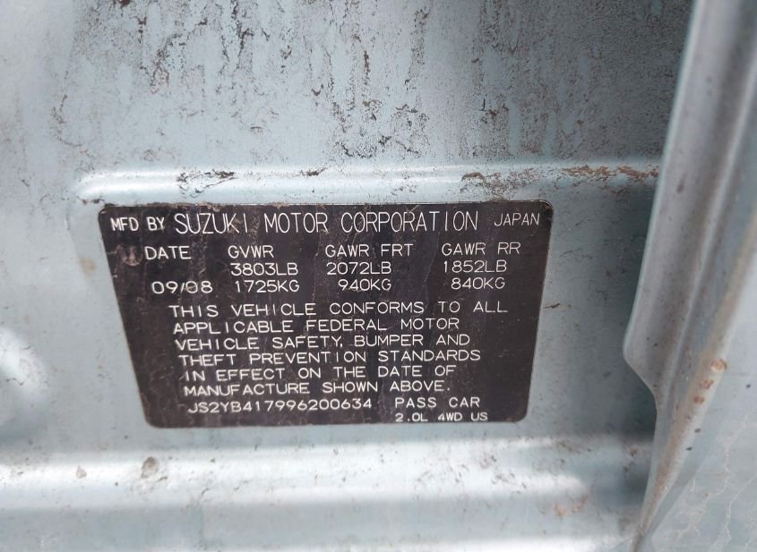 - VIN: JS2YB417996200634