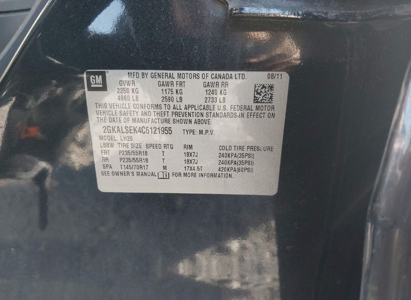 - VIN: 2GKALSEK4C6121955