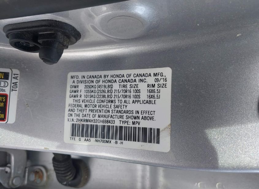 - VIN: 2HKRM4H32GH698433