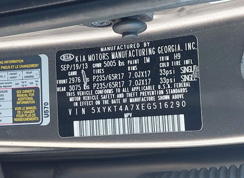 - VIN: 5XYKT4A7XEG516290