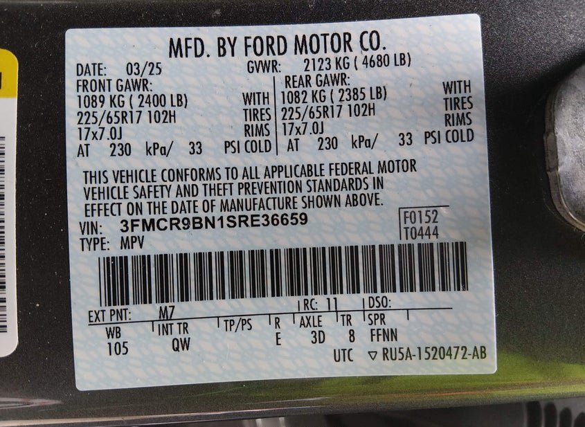 - VIN: 3FMCR9BN1SRE36659