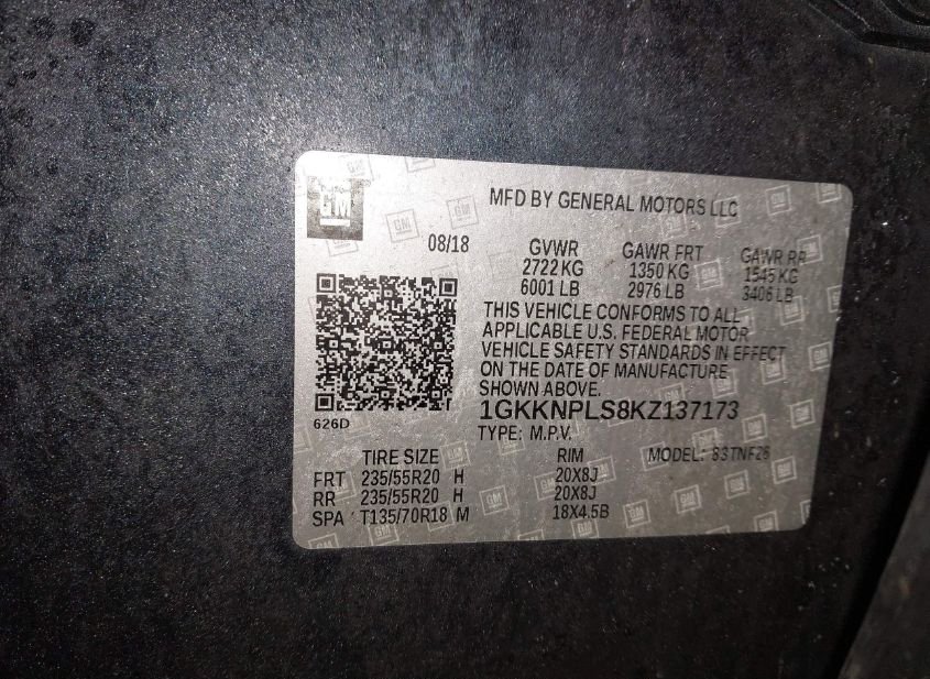 - VIN: 1GKKNPLS8KZ137173