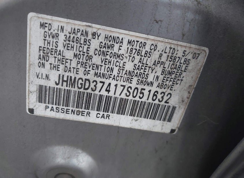 - VIN: JHMGD37417S051632