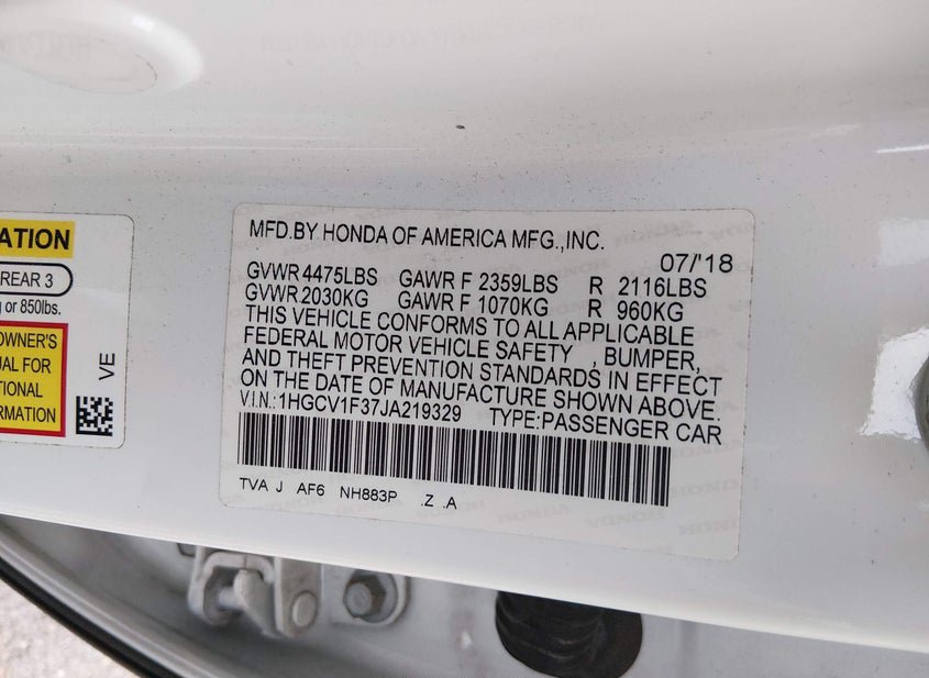 - VIN: 1HGCV1F37JA219329