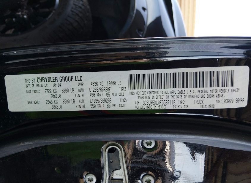 - VIN: 3C6UR5DL0FG537116
