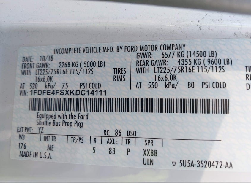 - VIN: 1FDFE4FSXKDC14111